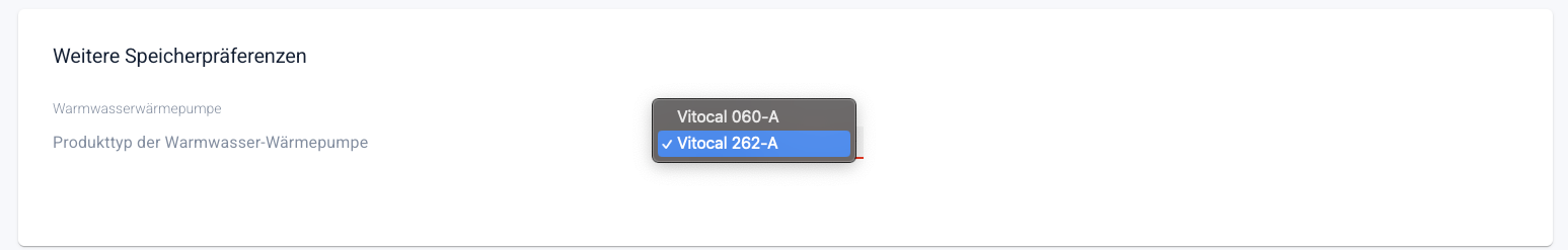 Berechnungseinstellungen mit aufgenommen worden. Damit stellen Sie ein, wann Sie eine Brauchwasserwärmepumpe bevorzugt anbieten wollen und vor Allem welches Modell.
